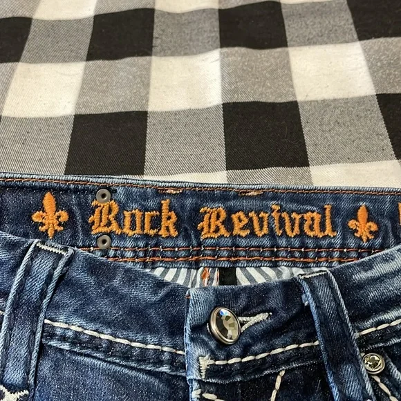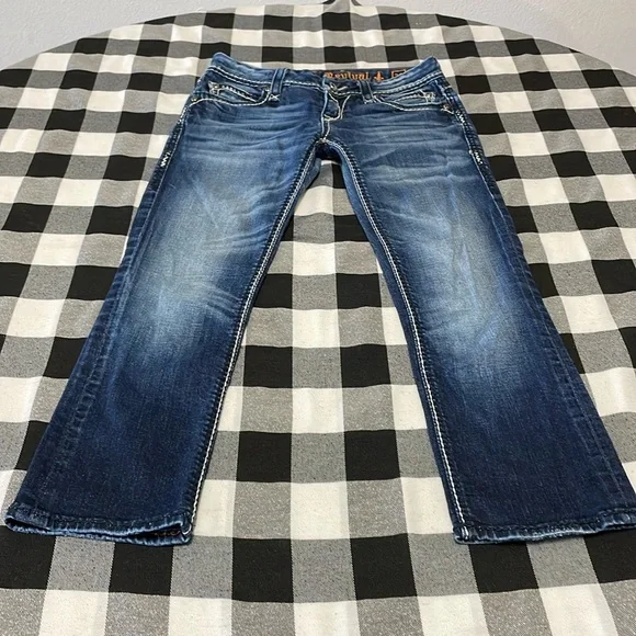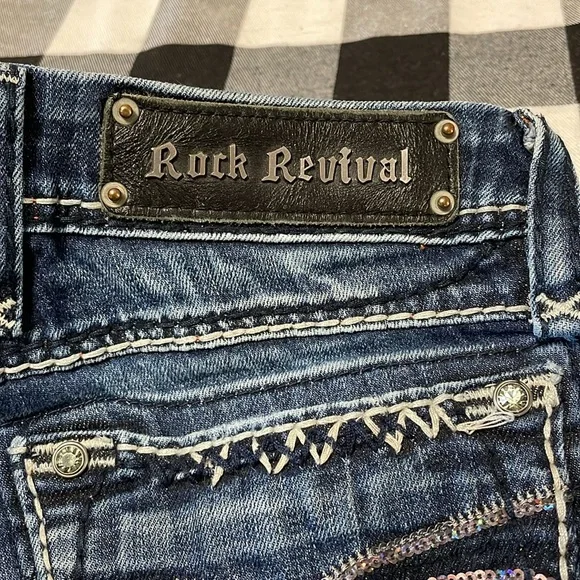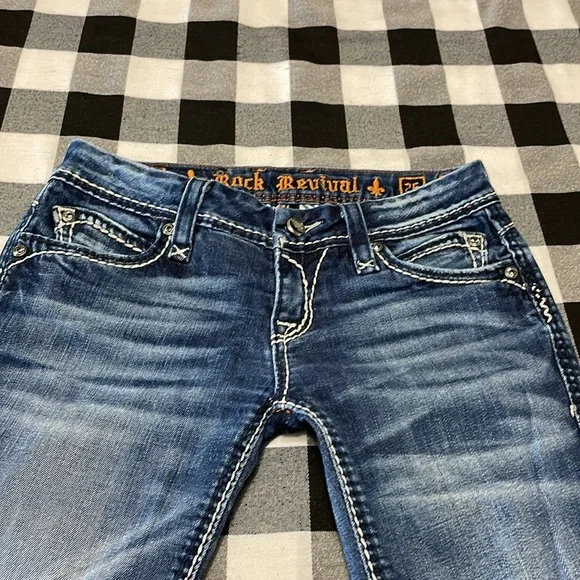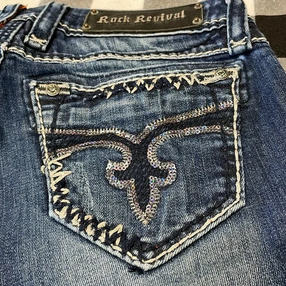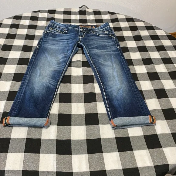 GREAT CONDITION!Rock Revival Charlotte Capri JeansSize 26PLEASE MEASURE YOUR JEANS TO MATCH.Please examine all pics for best description. Non smoking homeApproximate Measurements: 13 3/4" across waist , 7" front rise, 6 3/4" across knee, 6 3/4" across ankles, 24" inseamAny questions please askThank you for looking!Bundle and Save!042024