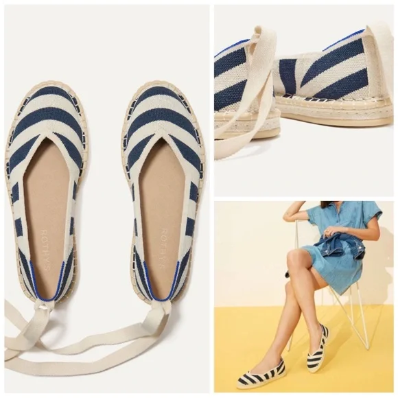 ▪️ Rothy’s▪️ The Espadrille Flats - Removable ankle tie▪️ Navy Sailor Stripes (Navy Blue & Off-White)▪️ Size: 9.5▪️ Recycled PET, hemp, cotton upper; Textile insole; EVA outsole▪️ New without box👉🏻 Original box not included.🔹 Please review all photos & measurements🔹 🚭, 🐱 Household🔹 Reasonable offers welcome🔹 Bundle to get 10% off 2+ items🔹 Sorry, 🚫 trades