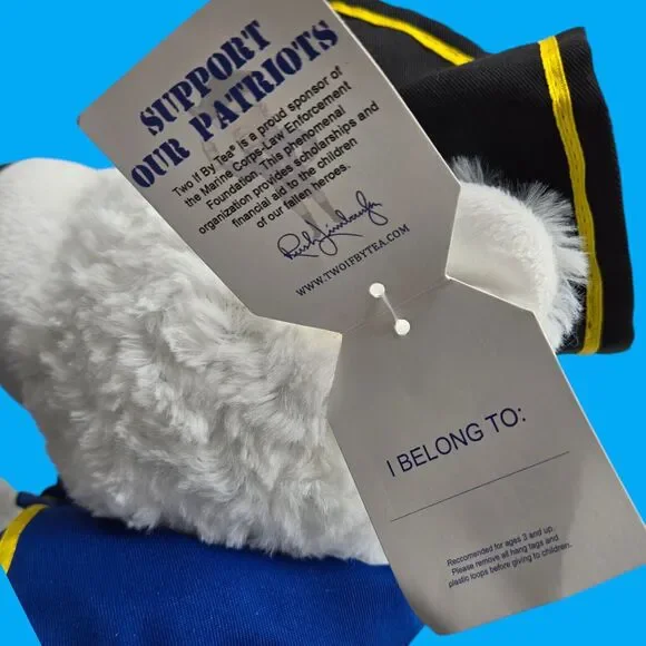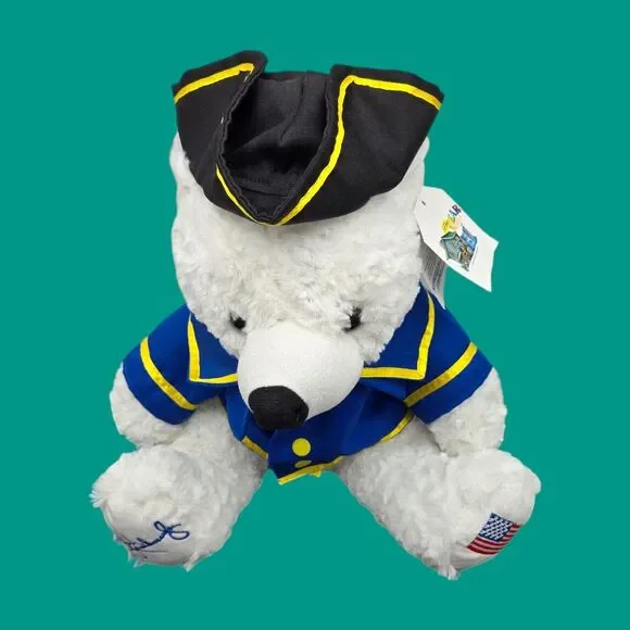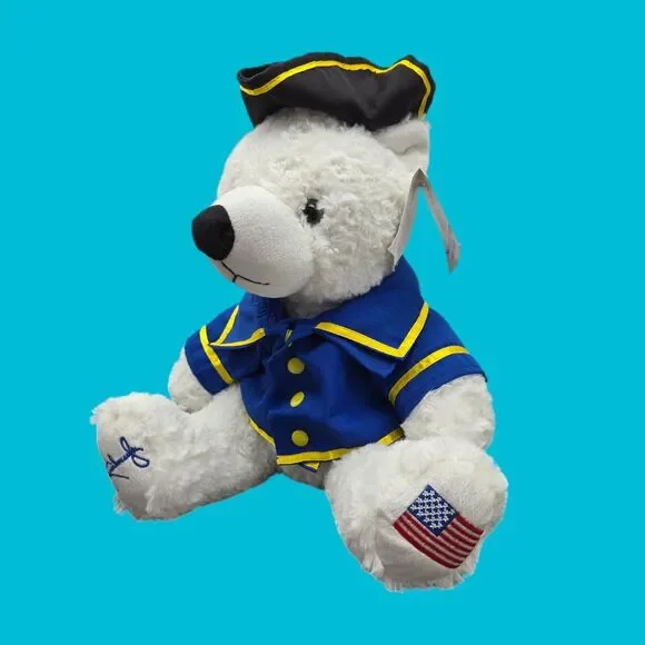 Zoom in for details. You will receive the exact item shown. Appearance may vary with lights, background, or screen. May present with typical wear. Well-cared for and clean. No stains, rips, or tears. Enjoy this patriotic collectible. Ready for gifting! Enjoy!Rush Limbaugh Two If By Tea USA Patriot Plush Stuffed White Teddy Bear with Tags*Measures 15" from head to paw*Rush Limbaugh signature on paw*The Bear Mill - Two If By Tea*Made in China