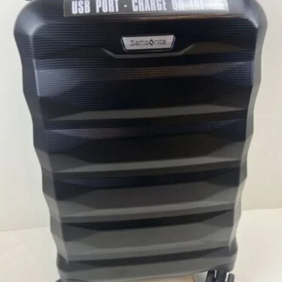 Samsonite Spin Tech 4.0 20" Hardside Carry On SpinnerPower Through Your Next Trip. An IntegratedUSB Port Charges Your Devices So You CanStay"On,"( Powerbank not included) While The Rugged Polycarbonate Shell, Upgraded Spinner Wheels, AndExpandable Packing Space Give You TheStrength And Flexibility You Need Every TimeYou Take Off.Fabric Care: Wipe With Clean ClothFabric Content: PolycarbonateApprox. Exterior Dimensions: 22.25"W x 14"L × 9"HApprox. Packing Dimensions: 19.6"W x 13.75"Lx g"HImportedWeight: 6.55 IbsExterior: Corrugated polycarbonate shell design forEnhanced strength, USB port for powering devices on the go (Powerbank not included), TSA-approved lock.Expandable: 1.5"Handles: Angled handle tubes for greater stability and controlWheels: 360-degree dual spinner wheels for confident and comfortable mobilityInterior: Easily accessible battery pocket(Powerbank not included), large mesh pocket for organization, lining in a modern geometric pattern, elastic tie-down straps for securing belongings, integrated accessories pocket for small itemsMeets carry-on requirements for most major airlines