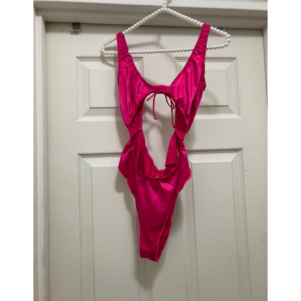 Satin Woven Shine Tie Front Teddy Raspberry PINK Romance Collection Lingerie