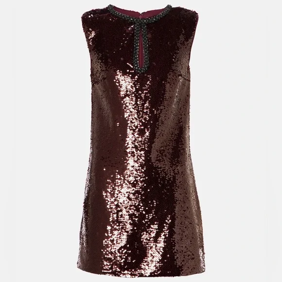 Ship day will be same day or very next day!The dress is so much because than pictures! It's a perfect dress for winter event or a cocktail party! Shiny but low key! The details:Nothing says winter festivities like a burgundy dress, and this one — with its all-over sequins, shift silhouette and keyhole design — takes the cake. Pair with platforms to dance until dawn.Fitted style, take one size up if between sizesThis style has minimal stretchZip closure at backCut-out detail at frontModel is 5ft10/178cm and wears a size UK 6/ US 2. Main Fabric 1: 100% Polyester 100% Nylon Main Fabric 2: 100% Polyester Main Fabric 3: 100% Polyester Lining: 96% Polyamide 4% Elastane
