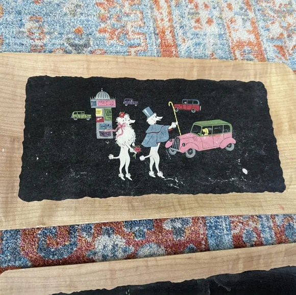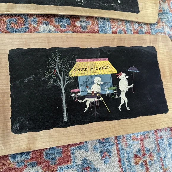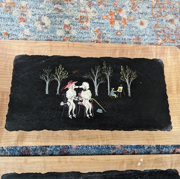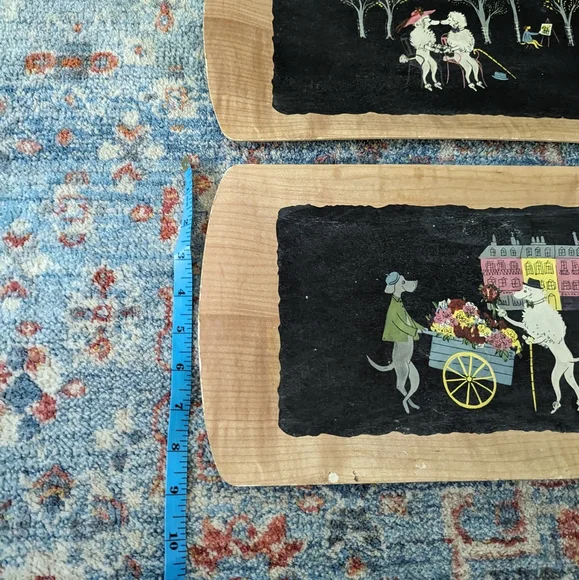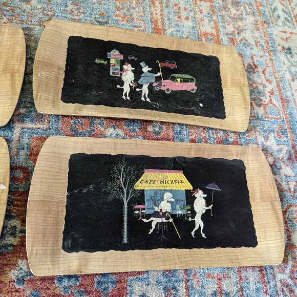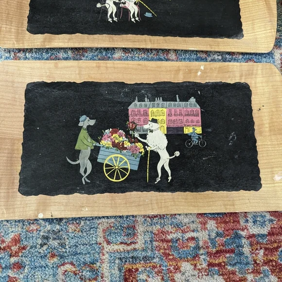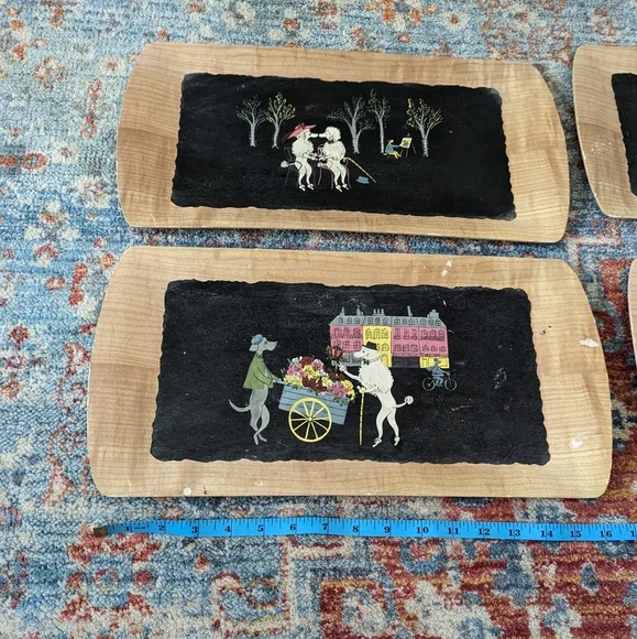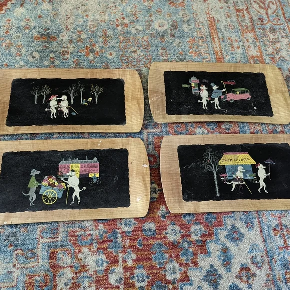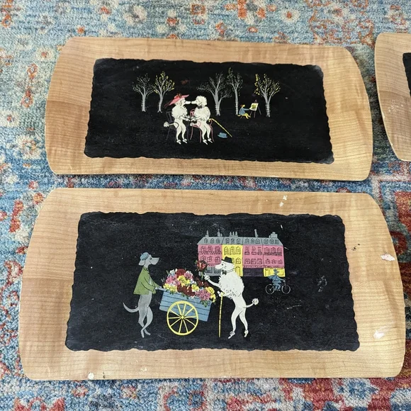 Set Of MCM 4 Vintage Poodle Serving Trays The Romance of Fifi & Pepe Balsa Wood?