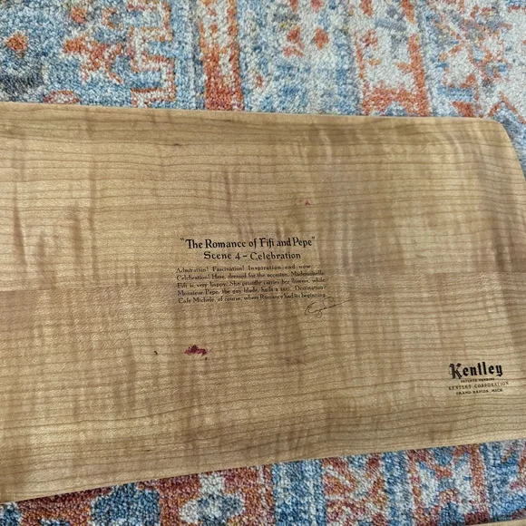 Good condition but definitely has many imperfections. Please review all pictures! Such a cute vintage pieces. I'm not sure the material, but it kind of feels like balsa wood to me.Measurements in pictures.