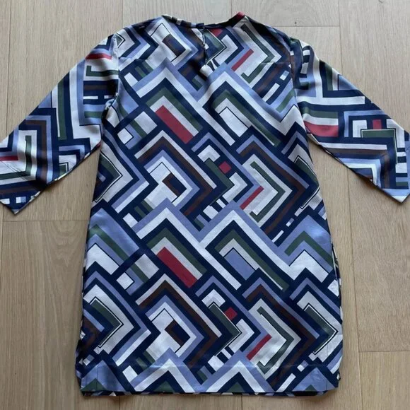 The silk is substantial, similar to what an Hermes scarf feels like.Such a great, unique print, in a loose and summery fit.Which makes this little dress so fun, eye-catching, and versatile.Dress up or down.Looks as cool with heeled sandals as it does with chic sneakers!Originally $550 from Max Mara in NYC.Beautiful condition, worn twice.