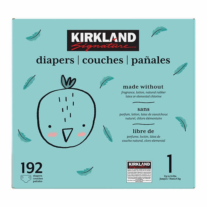 SIZE 1: Kirkland Baby Diapers Mega 192 Count ~ Free Fast Shipping