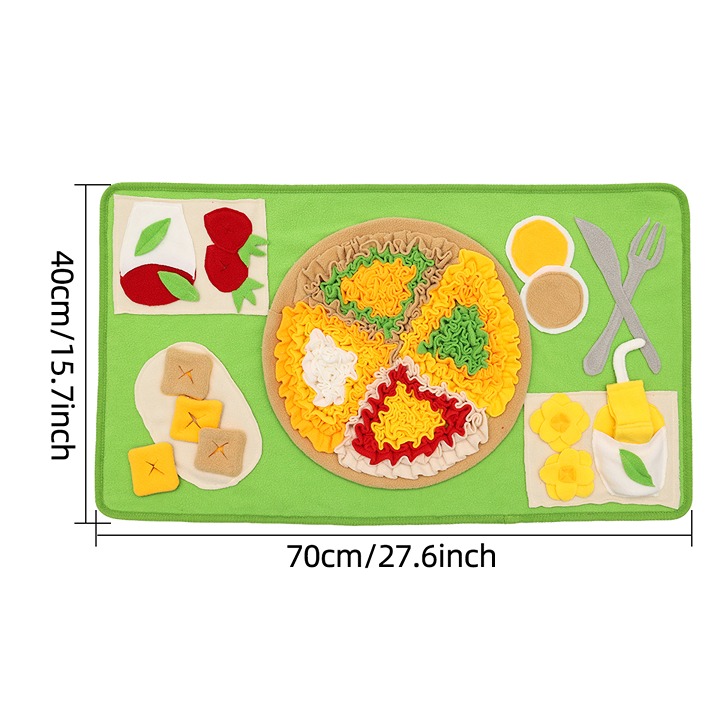 Turn mealtime or playtime into a fun brain game! Hide treats or kibble inside the soft fleece layers and let your pet “hunt” for their reward. This interactive snuffle mat helps slow down fast eaters, reduce stress, and provide mental stimulation.