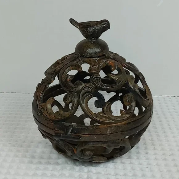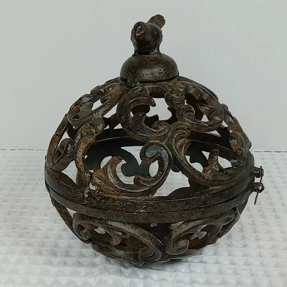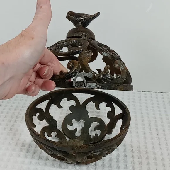 Beautifully crafted metal bird cage decor with intricate scrollwork and bird accent. Perfect for adding a rustic touch to any space.Cannot be bundled at this weighs4.5 lbsRustic cast ironLatched openingShips from clean smoke free/dog friendly home.Happy to answer any ?'sNew to ? Use my code LIZARD632 to sign up & save $10 on your 1st purchase.Measurements are taken flat lay and are approximate.