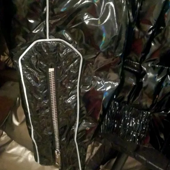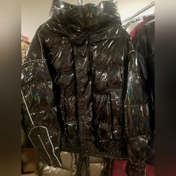 Spread Collar Hooded Down Puffer Jacket (Metallic Black) - Gentle HerdTake your cold weather fashion to the next level with this metallic/iridescent black down puffer jacket with silver piping and zipper detail.Features high neck and attached hood for extra protection, front zipper with button down fastenings, deep pockets, side zippers, cinched hem and cuffs, and tailored design. Size Medium New with Tags Shell is 100% Polyester. Filling is 90% Duck Down & 10% Feather.*Please see photo(s) for actual product color, which may vary slightly from stock photos. Refer to posted size chart for measurement information. Some items/brands run large. All sales are final per Posh guidelines.