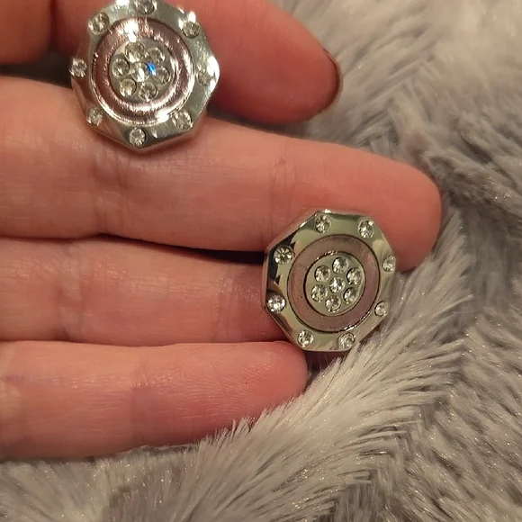 Stainless Steel Silver and Pink Cuff Links with Cubic Zirconia Brand New In Box