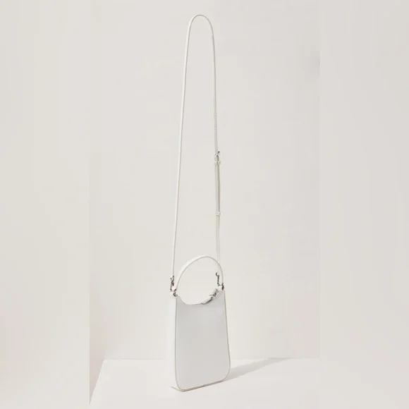 Brand new. Can be held or worn as a crossbody. Purchased from Staud. Tag not attached but never worn. Leather: CowhideDebossed logo emblemTextured leatherSilver-tone hardwareZip closurePatch interior pocketOptional, adjustable strapSuede liningWeight: 11oz / 0.31kgImported, CambodiaStyle #STAUD31449Timeless understatement is the order of the day with this scaled-down STAUD bag, which features a slender north-south silhouette and bright white leather.