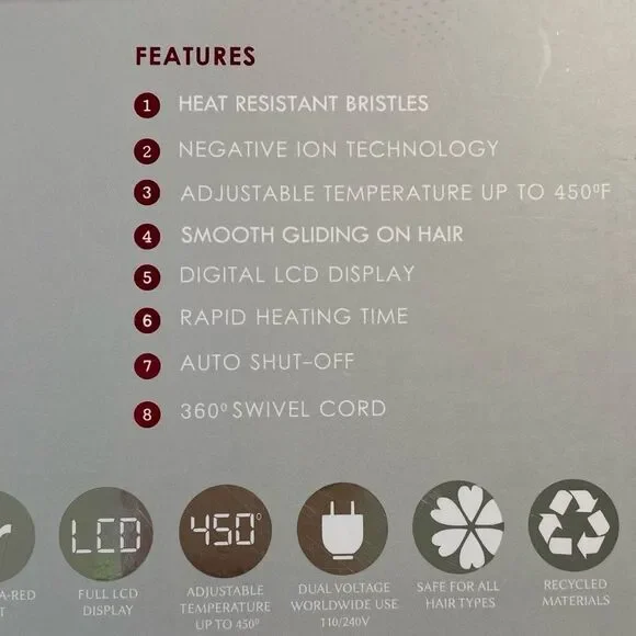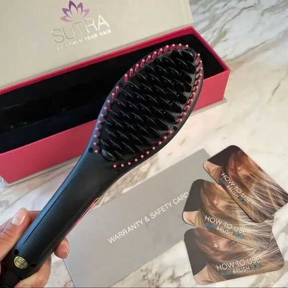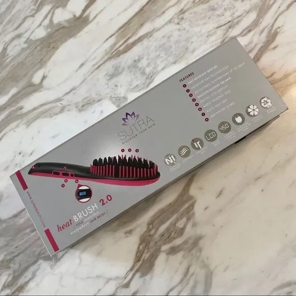 Sutra Pink Ionic Heat Brush 2.0 FULL SIZE *Majorly Discounted*Heats up to 450FAdjustable Digital Temp.Silicone Tip BristlesRapid Heat timeAuto Shut-off360 swivel cordDual VoltageAll hair typesStraighten &smooth your hair with Negative Ion Technology- results that leave hair sleek, shiny, and lustrous.Infra-Red Heat ensures temperature level is consistently maintained.New in box, with warranty booklet & instruction cards.Tested to ensure it works (see pics) and everything is A-ok!
