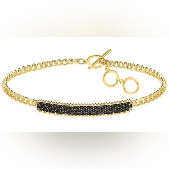 Swarovski Gold Plated Locket Bracelet. This glamorous must-have bracelet features black crystal pavé and yellow gold-plated metal chain. It has a trend T-bar closure, which can adjust it to three different lengths.🌟New to ? Sign up using the link below & use code franchasca_c for $10 off your first purchase- https://posh.mk/vm6o0wBhTLb