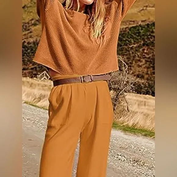 Terracotta Knit Top and Joggers SetPlease allow 7-10 business days to ship. Features: PocketedNumber of pieces: Two-pieceStretch: Highly stretchyMaterial composition: 100% polyesterCare instructions: Machine wash cold. Tumble dry low.ImportedProduct measurements:Top:S: bust 20.5 in, sleeve length 17.7 in, length 19.3 inM: bust 21.5 in, sleeve length 18.1 in, length 19.7 inL: bust 22.6 in, sleeve length 18.5 in, length 20.1 inXL: bust 23.8 in, sleeve length 18.9 in, length 20.5 in2XL: bust 25.1 in, sleeve length 19.3 in, length 20.9 inBottoms:S: waist 25.6 in, hip 20.9 in, length 37 inM: waist 26.8 in, hip 21.7 in, length 37.6 inL: waist 28 in, hip 22.5 in, length 38.2 inXL: waist 35.2 in, hip 23.2 in, length 38.8 in2XL: waist 36 in, hip 24 in, length 39.4 inKnit Top and Joggers Set