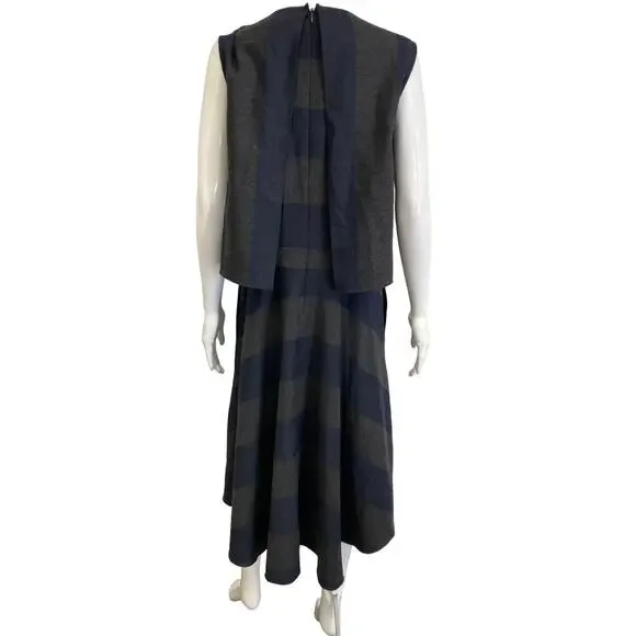 TIBI Gray And Blue Blend Wool Striped Horizon Sleeveless Midi A-Line Dress 6This TIBI Gray And Blue Blend Wool Striped Horizon Sleeveless Midi A-Line Dress 6 is expertly crafted from a luxurious wool blend. Highlighted by a captivating stripe pattern in soft gray and blue tones, it features a gracefully flowing midi-length skirt, exuding timeless elegance and charm.Brand: TIBISize: 6Chest: 21.5"Length: 46"Item condition: Pre-owned, ExcellentMaterial: Wool blendColor: Gray, BlueCountry/Region of Manufacture: ChinaAuthenticity: All our items are guaranteed 100% Authentic. Shop with confidence knowing you will receive a beautiful, designer, 100% Authentic piece every time you shop with Luxe Labels.Feel free to reach out with any questions or concerns you may have