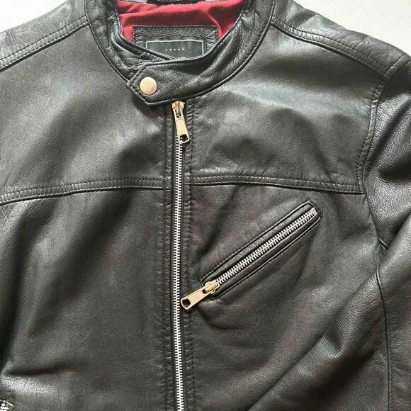 Topman Genuine Leather Jacket - Size SmallMaterial: Genuine leatherLining: PolyesterCondition: Excellent – no holes, rips, or unpleasant odors.This jacket has been stored safely in my closet for years and hasn’t been worn in a long time. It’s time for it to find a new owner who will appreciate it!Measurements:Pit to pit: 19 inchesShoulder to hem: 26 inchesNeck to bottom hem: 25 inches