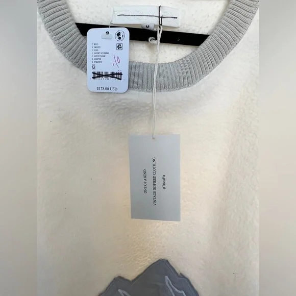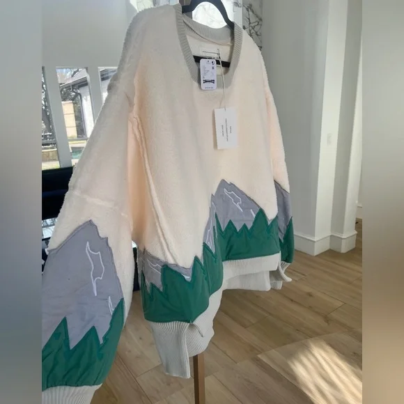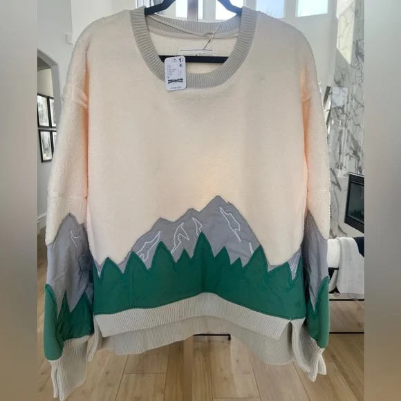NWTSize MMsrp $178Sold out style. Hard to find! PTP 24” very oversized Length 27” A reworked, one-of-a-kind iteration of our iconic Camden style, this Tricia Fix design takes your favorite pullover and reworks it in a cozy sherpa fabrication with an embroidered mountain scene for added dimension.Fit: Relaxed, slouchy fitFeatures:**Scoop neckline, dropped shoulders, defined seaming, side slits at bottom, contrasting ribbed hems