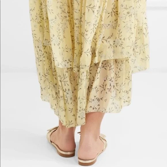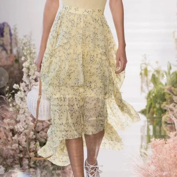 Ulla Johnson’s mirrored runway covered with freshly picked blooms created an Instagram-worthy space for the designer to present her new collection. Worn on the day, this ruffled skirt certainly matched up to the pretty surroundings. It’s cut from swathes of silk-georgette printed with faded flowers inspired by the idea of transparency. – Multicolored silk-georgette– Concealed zip fastening along side– 100% silk; lining: 100% viscose– Designer color: Acacia*Doesn't have tag attached and needs to be repaired on the left side as seen in the last photo*