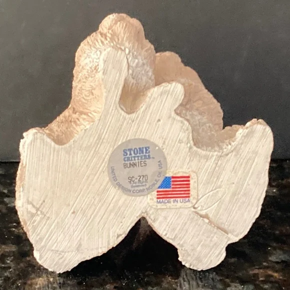 Perfect for display for Spring and Easter!Realistic and charming bunnies made of resin by United Design Corp. in the USA!Display individually or all together, they are adorable no matter which way you go!The largest (set of two together) is 3 1/4 inches in width x 3 1/4 inches in heightPre-owned in mint condition!