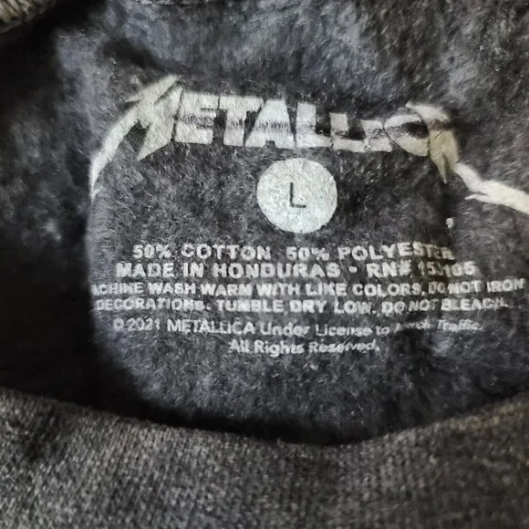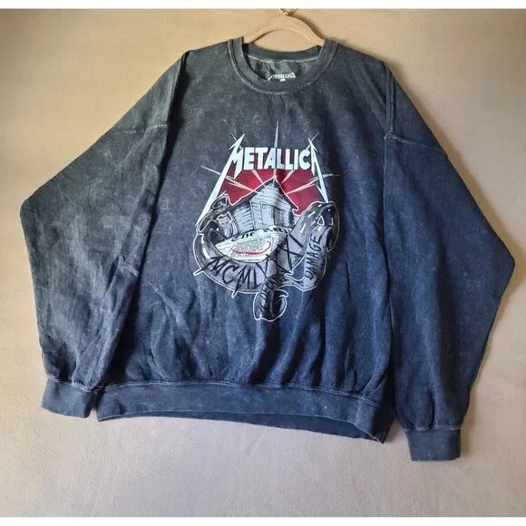 Urban Outfitters Metallica Fleece Crewneck Oversized Sweatshirt UNISEX L Black LS NWOT[Item has a line through name to prevent return to the store but is new.]Dye tech crew neck sweatshirt with a Metallica graphic. Finished with ribbed knit trims.-Color is Washed Black which looks like a dark gray.-SOFT & COMFORTABLE: An inner fleece lining offers enhanced comfort.-BOLD GRAPHICS: Metallica graphic is screen-printed on the front of the sweatshirt. -Ribbed crewneck, cuffs and hemline.-50% Cotton, 50% Polyester-Machine wash.Measurements (Flat Lay):Pit to Pit: 26 inLength of sleeve (from shoulder seam): 23 inLength (from top of shoulder): 27 inPlease contact me with any questions or if you need any additional information.