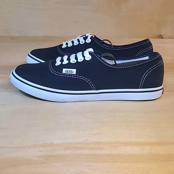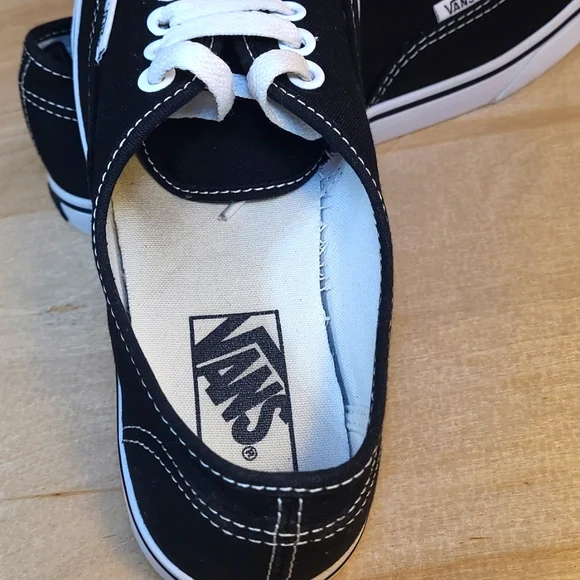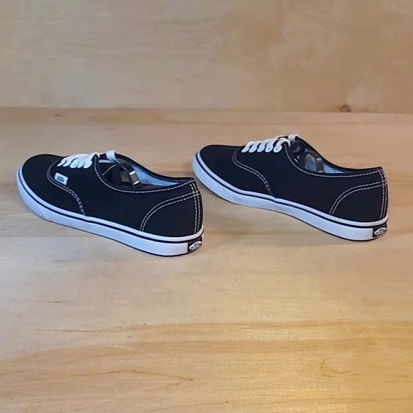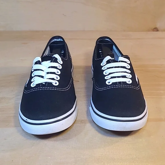 Vans Black and White Canvas Unisex Mens Size 6 Womens Size 7.5 SneakersSleek black canvas sneakers with white laces. Iconic Vans logo on the side.*Size Mens 6/7.5 Womens*Pre-Loved*Item In Pictures Is The Exact Item You Are Purchasing*Shoes Are In Excellent Condition *Fast Shipping *Carefully Wrapped and Packaged*Offers Are Always Welcomed *Bundle 2 Or More Items and Save 20% Off*Please Contact Us With Any Questions *Follow Us For New Listings