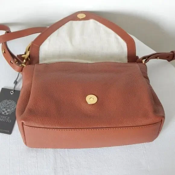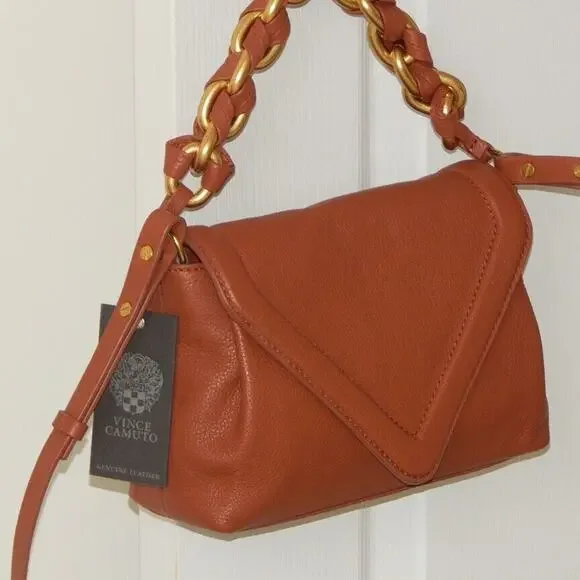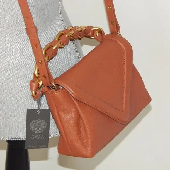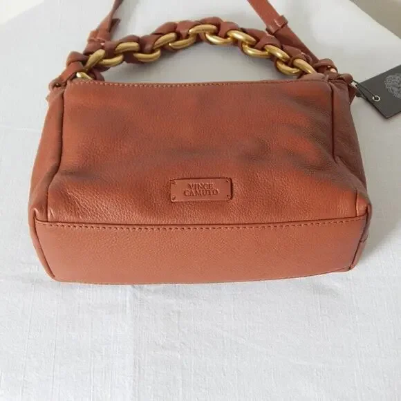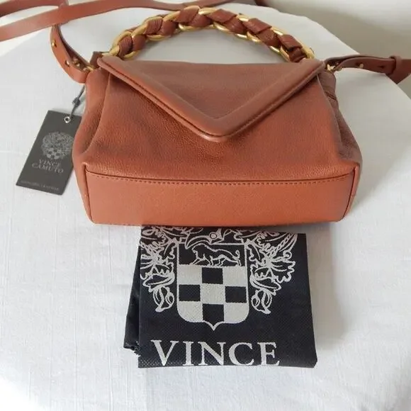 BRAND NEW WITH TAGS ATTACHEDVINCE CAMUTOCROSSBODY BAGTITLE LYONAAUTHENTIC 100%CARE CARD & DUST BAG INCLUDEDCRAFTED FROM TEXTURED PEBBLED LEATHERCOLOR WARM CARAMELFLAP WITH MAGNETIC SNAP CLOSUREEXTERIOR BACK SLIP MEDIA POCKET SECURED WITH MAGNETIC SNAP CLOSUREBAG ACCENTED BY INTERTWINED LEATHER & CHAIN TOP HANDLE 4 INCHES DROPDETACHABLE ADJUSTABLE CROSSBODY STRAP APPROX. 23 INCHES DROPBACK FEATURED LEATHER PATCH WITH EMBOSSED VINCE CAMUTO LETTERINGGOLDEN TONE HARDWAREFULLY FABRIC LINED INTERIORINTERIOR ZIP & SLIP POCKETSINTERIOR FEATURED ATTACHED VINCE CAMUTO LOGO PATCHVARIATIONS IN LIGHTING AND DEVICE’S SCREEN SETTINGS MAY AFFECT THE PERCEPTION OF COLORSAPPROX. BAG DIMENSIONS9”W X 5.5”H X 3”DRETURN POLICYRETURNS ACCEPTED FOR THIS PARTICULAR ITEMONLY IF MISREPRESENTED OR NOT AS DESCRIBED!Returns must be the same condition as you received with original wrapping and tags onPLEASE CONTACT ME IF YOU HAVE ANY QUESTIONSBUY WITH CONFIDENCE!ALL ITEMS COME FROM A VERY CLEANSMOKE AND PET FREE HOMEThanks for looking!