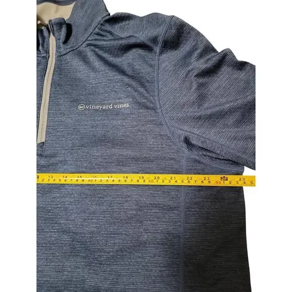 Vineyard Vines Blue Long Sleeve Performance Half Zip PulloverThis Vineyard Vines pullover combines comfort and style for any occasion. Featuring a sleek half-zip design in versatile blue, it's perfect for an active lifestyle. The performance fabric ensures you feel fresh and cozy.Condition: Good condition.Size: XlFeatures: Blue, Long sleeve, Performance fabric, 1/4 Zip, CollaredBrand: Vineyard VinesType: PulloverStyle: Half-ZipColor: BlueMaterial:Measurements:See pictures.Keywords: Athleisure, Casual, Men, Outdoor, Comfortable, Travel, Sporty, Beach, Stylish, Male, Versatile