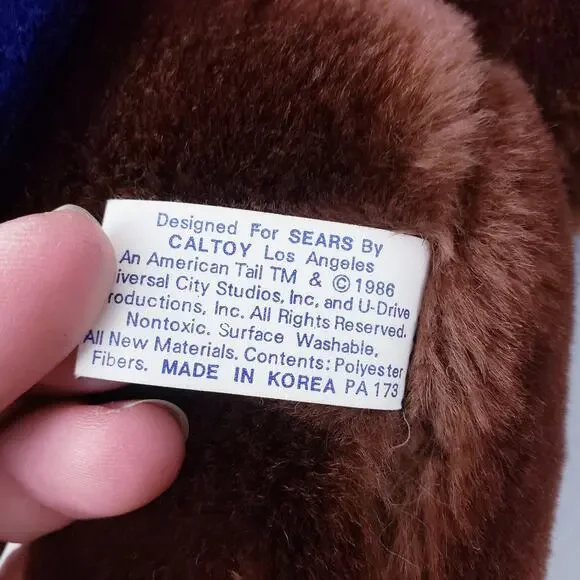 Vintage 1986 Sears Fievel Mousekewitz An American Tail 22" Plush.Good pre-owned condition free of any stains, smells, holes, or repairs. Light signs of play present such as marks to the black paint on his left eye. Please see the examples provided in the listing photos.Measures approximately 22" including hat.Thank you for looking!