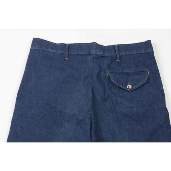 Vintage 70s Streetwear Mens 33x29 Distressed Bell Bottoms Denim Jeans Blue USAMens JeansHas stains/blemishes on the front and backs of both legs. Distressed and faded. 11.5 inch leg opening. USA madeMens size 33Measurements are:16.5 inches across the waist laid flat29 inch inseam40 inches from top to bottomBlueCottonCheck out my other items in my store!PR957