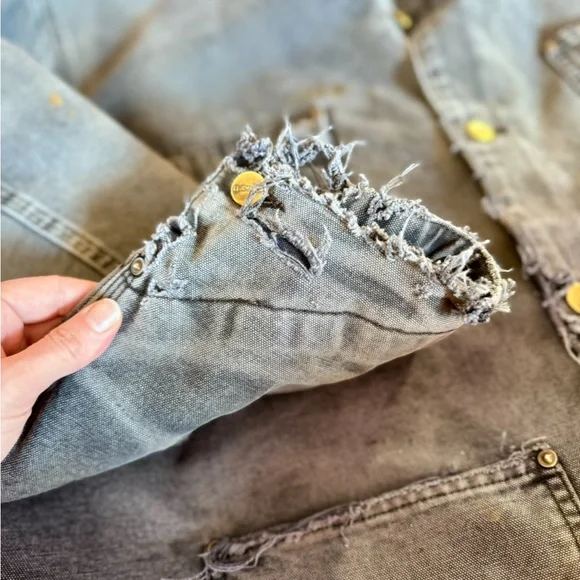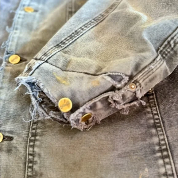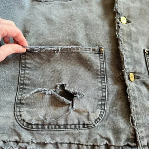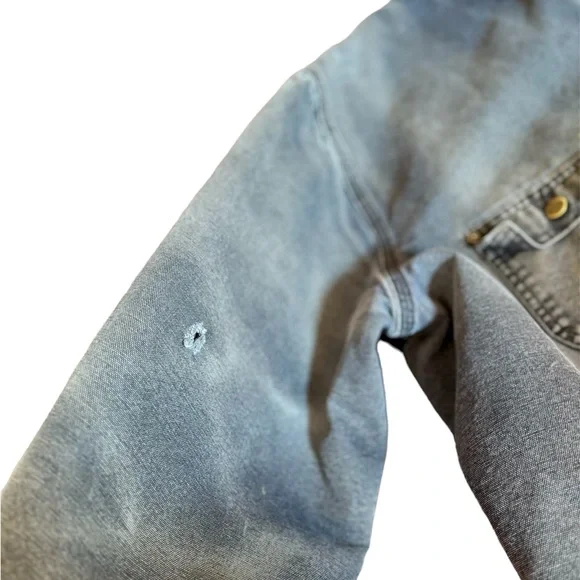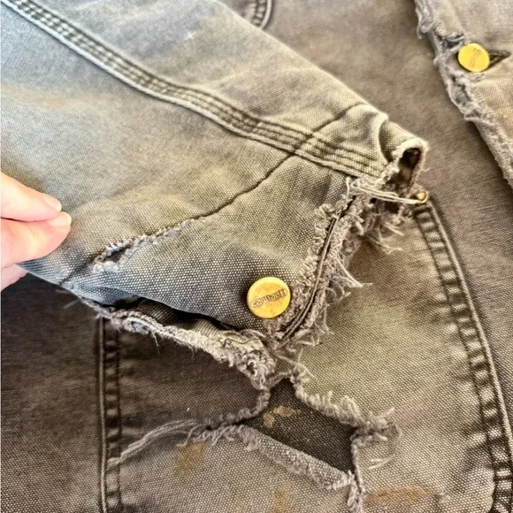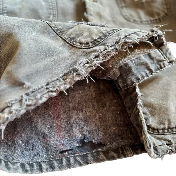 If you’re a fan of vintage items that look their age here’s a jacket for you. This Carhartt has all the holes and markings of a good trusty jacket. The size tag is missing so please rely on the measurements provided. I can provide extra pictures if needed. And I am open to offers. Approximate Measurements Armpit to Armpit 28”Sleeves 24”Length 29”Hips 26 1/2”Fits close to an XL