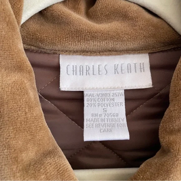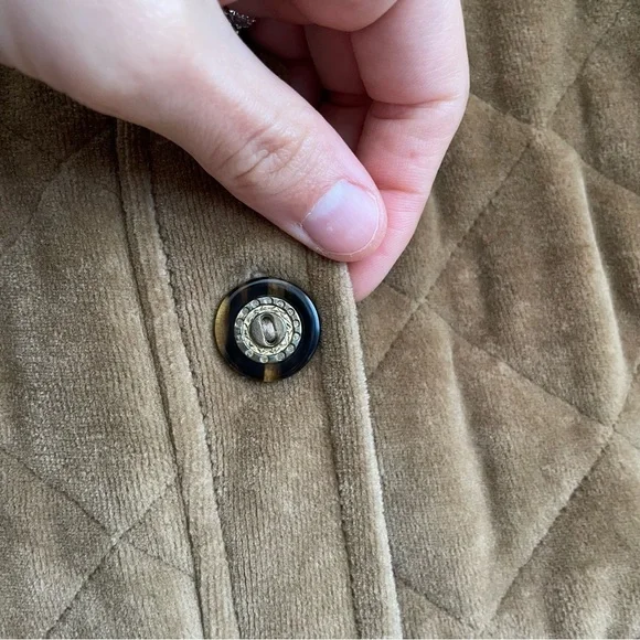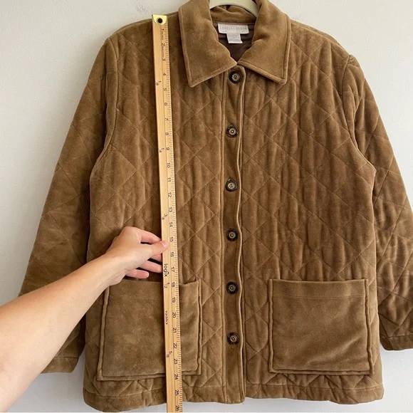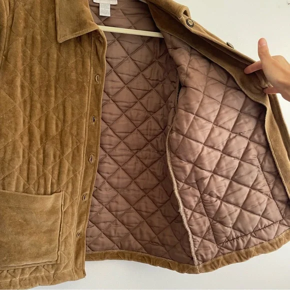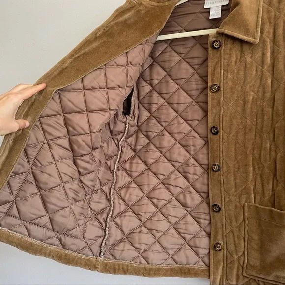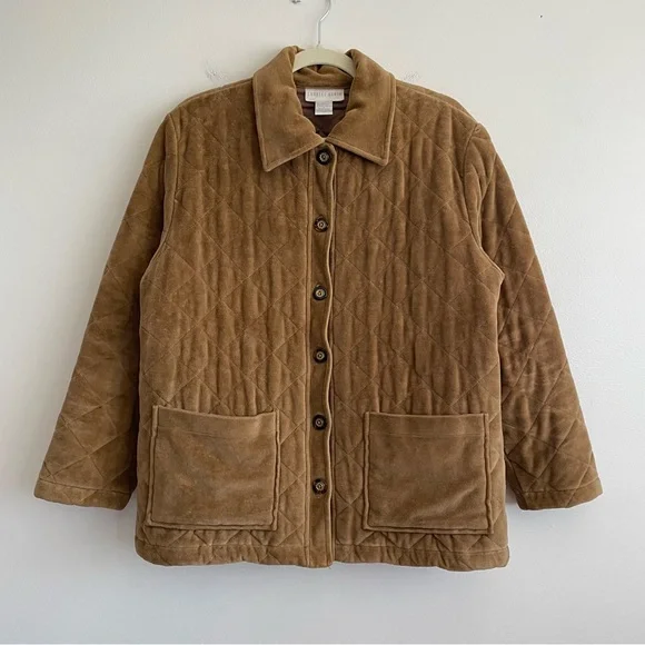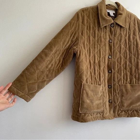 Vintage Charles Keith quilted barn jacket chore coat velvet brown button front SExcellent conditionSize smallFeatures:Button down front Solid color Collared Long sleeve Straight hem Brown buttons Camel tan brown All over quilted pattern Patch pockets Bin MTags: work wear utility army military puffer insulated ranch western cowboy workwear shacket Bundle this item with one or more items from my closet to receive a special discount!Get $10 inCredit to use on your next purchase by entering my code BRITTANYONPOSH when you sign up for a newAccount!