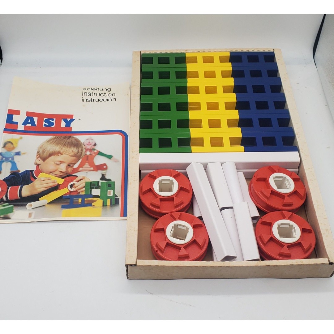 THIS IS A USED BUT IN VERY GOOD CONDITION VINTAGE LASY 2000 SET NO 301 CONSTRUCTION BUILDING SET WITH BOX AND INSTRUCTIONS