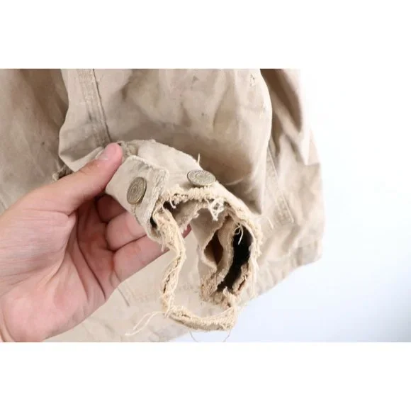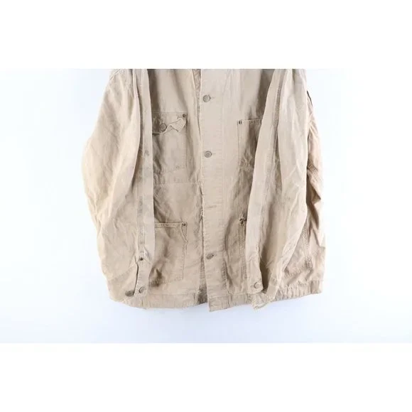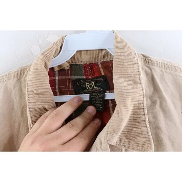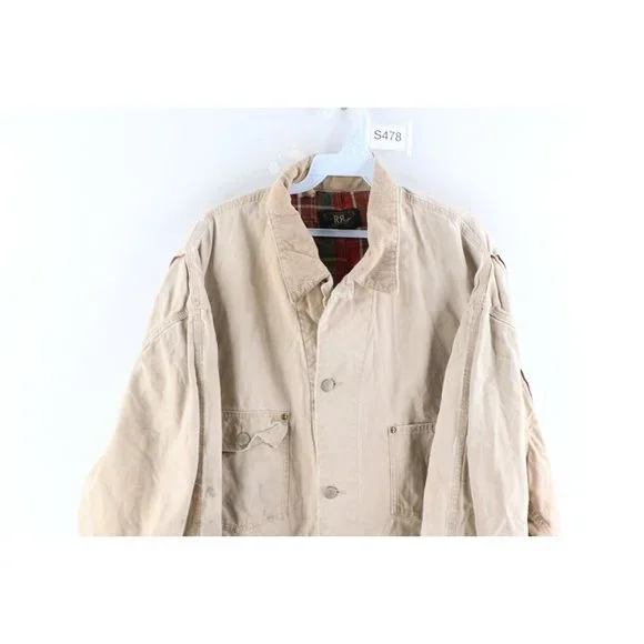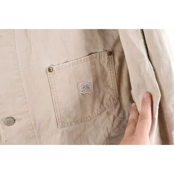 Vintage Ralph Lauren Double RL Mens XL Thrashed Flannel Lined Chore Barn Jacket USAMens JacketThrashed. Missing the 2nd button from bottom. Holes on the corners of the front pockets. Cuffs show heavy wear. Distressed and faded. View all photos.Mens size XLargeMeasurements are:25 inches underarm to underarm33 inches top to bottomBeigeCottonUS Shipping is FREE and part of the Global Shipping ProgramCheck out my other items in my store!S478
