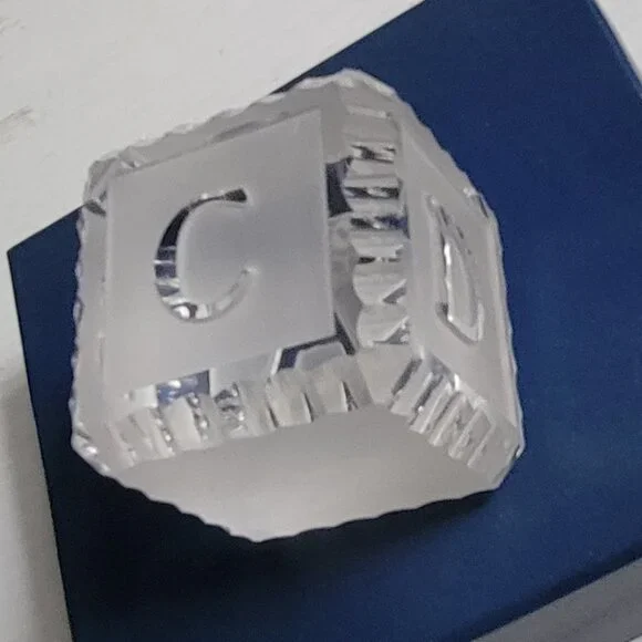 WATERFORD ABCDE Alphabet BLOCK Crystal Paperweight 2"Cube Made In Ireland, etch signed Waterford. Has one blank facet for personized engraving (baby girl boy's name etc).Mint in Box MIB (box is not prefect)==Bundle with other great Waterford figurine, bowl, vase etc from my closet and save on shipping fee !