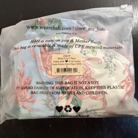 We Are HAH Wrap It Up One Piece Wrap Style Swimsuit Kyoto Kimono French Blue Size S - NWTWrap 1-piece bathing suit with a secret pocket & adjustable straps. Full coverage bottom & perfect V neckline. Supportive straps & cups ensure that this 1-piece is flattering on everyone! Wrap 1-piece Adjustable straps Supportive Full coverage bottom Machine wash cold Hang or lay flat to dryMSRP $198.00Brand New with tags from reputable wholesaler.Please let me know if you need any measurements before purchase.