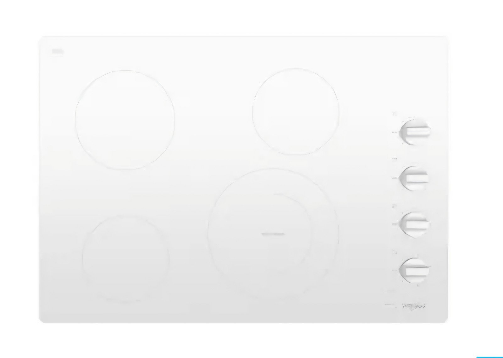 Sleek looks, simple to clean. This 30 inch wide electric cooktop from Whirlpool® is a good choice if you like having a cooktop separate from your oven, or if you have a large kitchen and want the option of an additional cooktop. Well thought-out features include 4 elements for cooking flexibility, a dual radiant element that fits different cookware sizes, and a cooktop indicator light for safety. Bonus: the cooktop is made of ceramic glass, so it’s easy to wipe clean once cooking is done.
