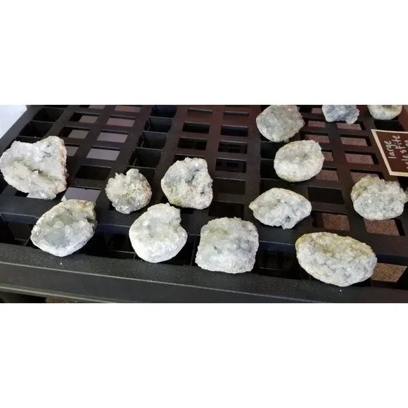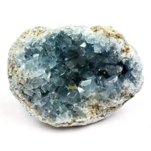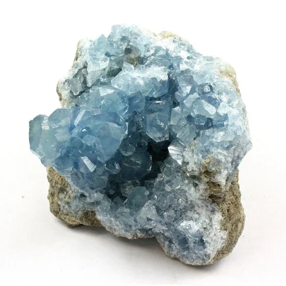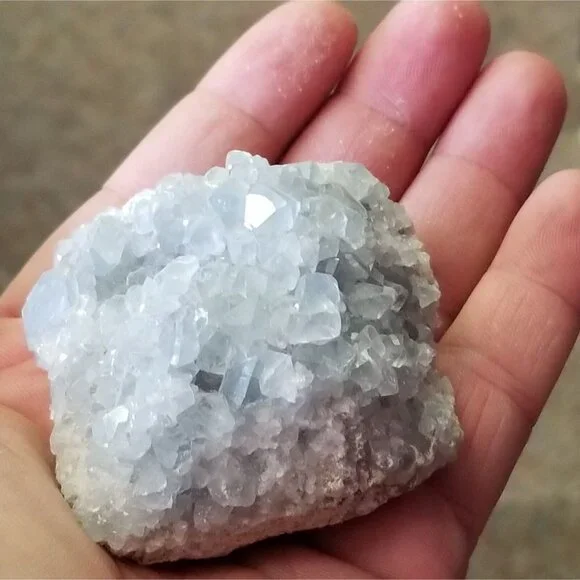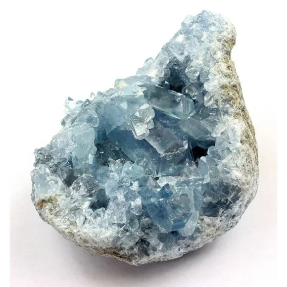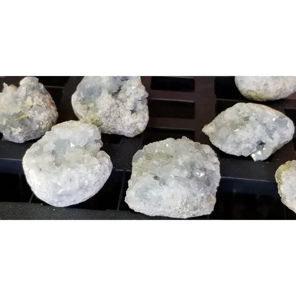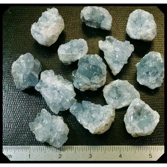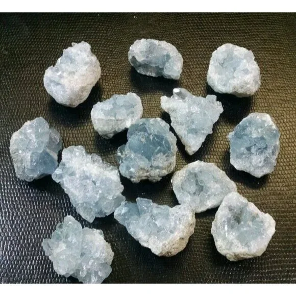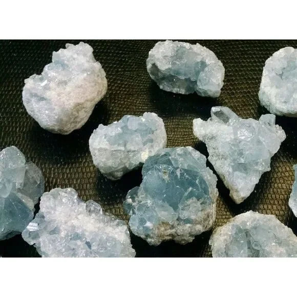 Beautiful Celestite crystal from Madagascar, premium quality, 5 gemstones each approx 2-3 inch, Size: Approx. 2-3"Origin: Madagascar Photo: Show Sample, you will receive a piece similar but selected at random. Hardness: 3 to 3.5 Crystal System: Orthorhombic Composition: Strontium Sulfate Celestite is an extremely popular stone, beautiful and vibrant. Often from the rich mines of Madagascar. Sought after for it's light sky blue color and unique Crystals. ** please note, pictures are examples of the item you will receive*****All stone will vary Slightly in size, shape, color and pattern.***