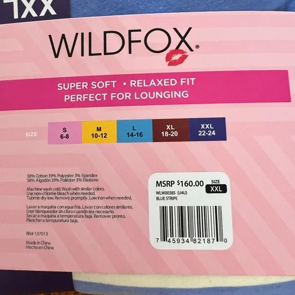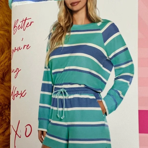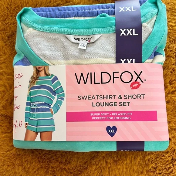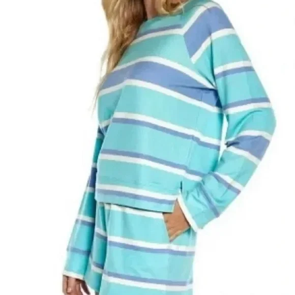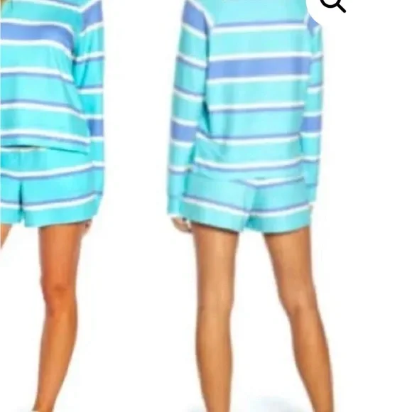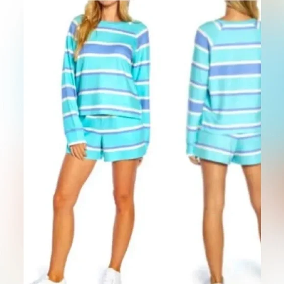 Wildfox Women's Relaxed Fit Super-Soft Sweatshirt &Short Lounge Set XXLCondition: NWTDetails:* Relaxed fit* Long sleeve top* Waist & Drawstring shorts* Two-tone blue and white strip design * Ultra soft material * Imported * Machine wash cold; Dry low* 58% Cotton 39% Polyester 3% SpandexSmoke and pet free environment Fast shipping Five star seller Bundle and save