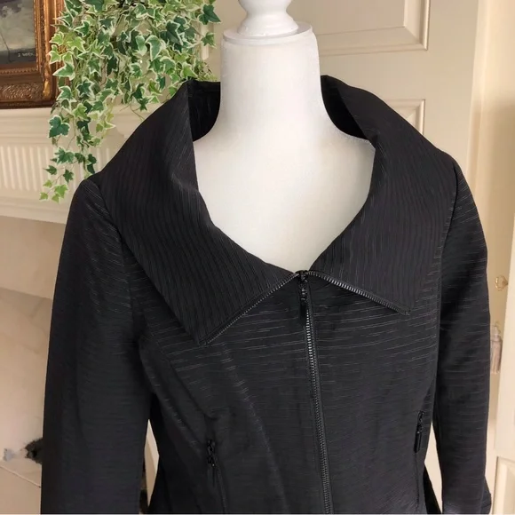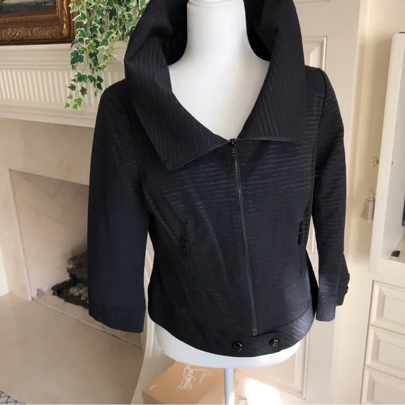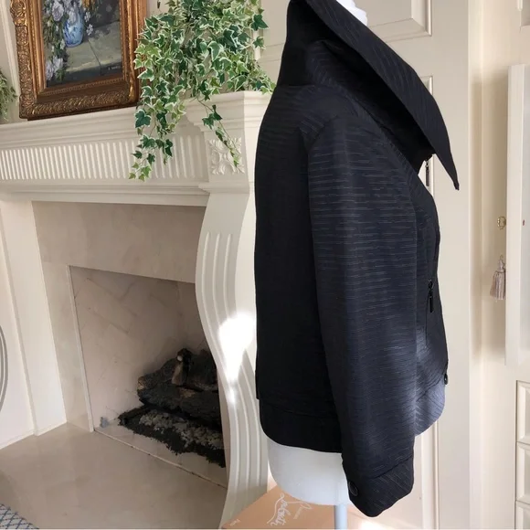 EUC Excellent Used Condition Worth black cropped jacket with zipper front and bottom band. LinedGreat substitute for a jean jacket. Would look great paired with a tank and jeans, little black dress, or any one color column outfit to elevate it to the next level.See photos for approximate measurements