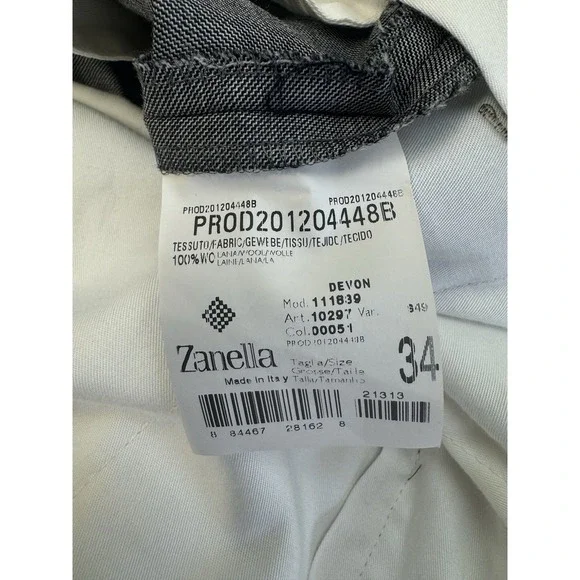 Zanella DEVON modelFlat Front Wool PantsFabric by Vitale Barberis CanonicoMedium GrayMen's Size 34Inseam 31" with 1.75" of total fabric inside hemExcellent conditionCheck out my other great items from Peter Millar, G/Fore, johnnie-O, Robert Graham, Polo Ralph Lauren / Purple Label and more.New listings daily!Why pay retail?